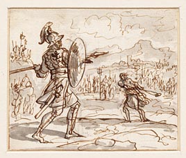 Goliath tegenover David en het leger der Israëlieten