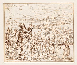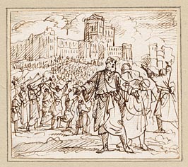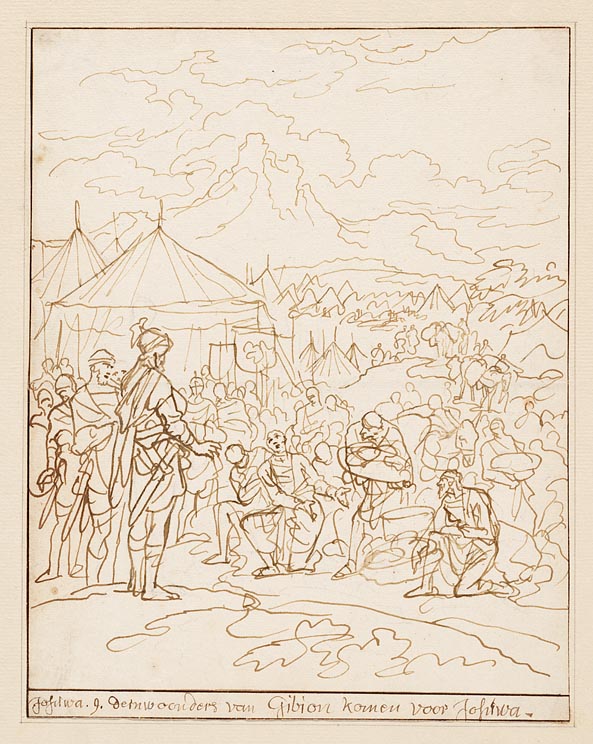 Jozua ontvangt de voor hem knielende Gibeonieten