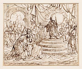 Alexander de Grote knielt voor het altaar