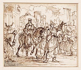 Mordechai te paard ontvangt eerbewijzen van het volk