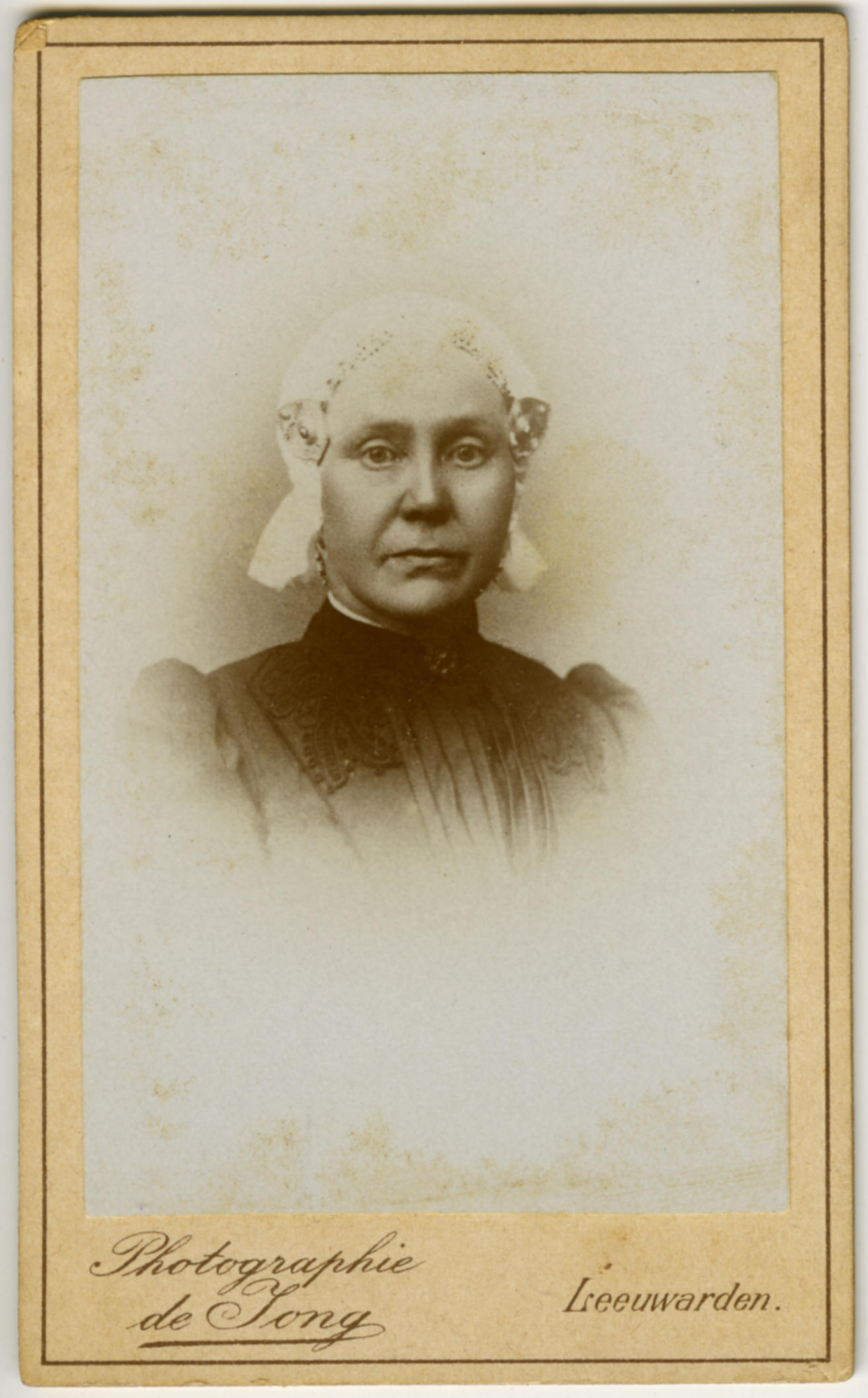 Fotoportret van een vrouw met een kornetmuts, 1904