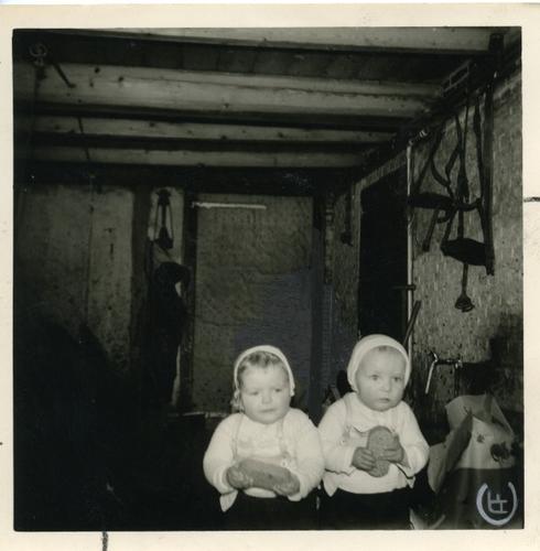 Foto in zwart-wit van een tweeling met veekoeken in ...