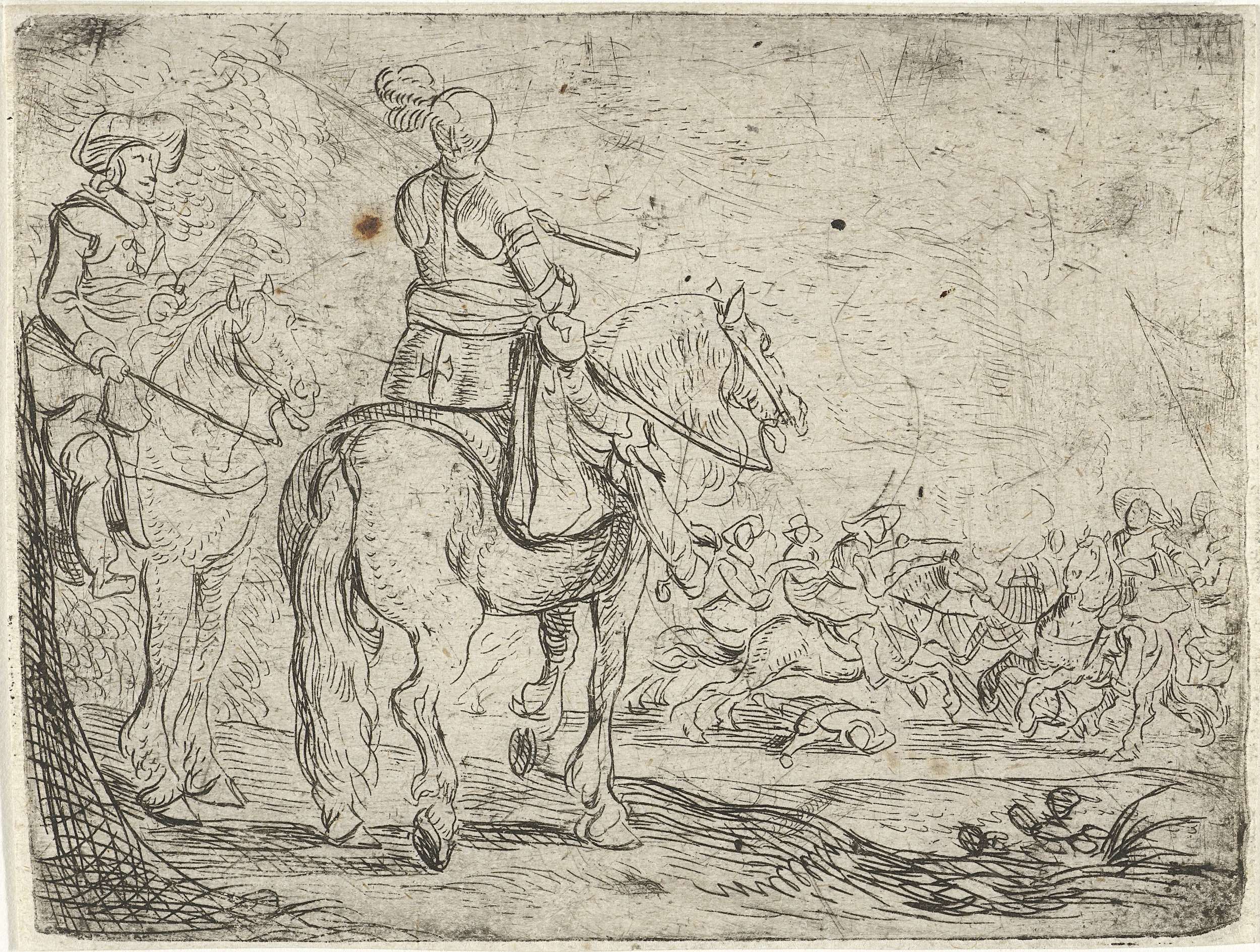 Twee ruiters bij een cavaleriegevecht