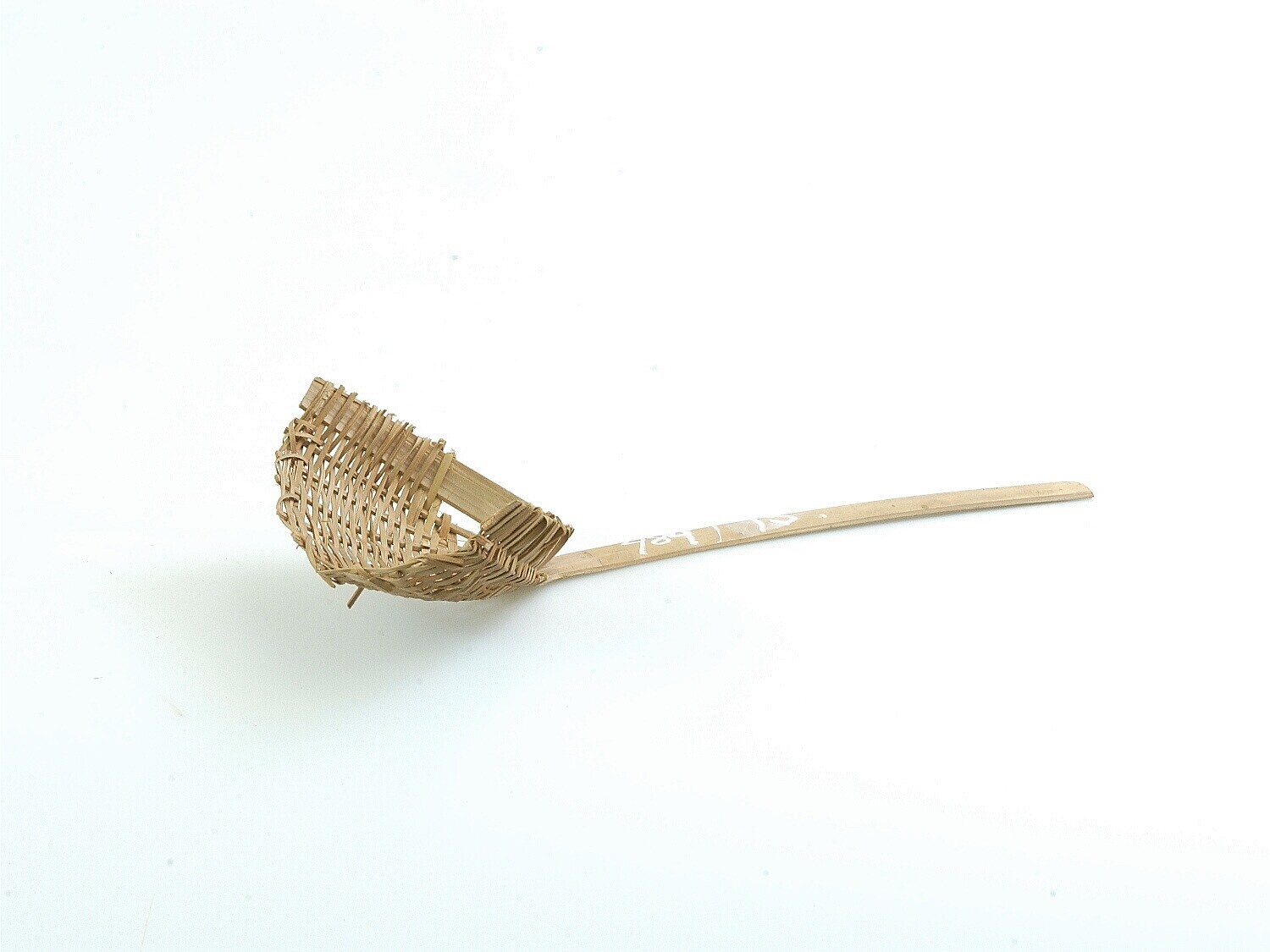 Model van een gevlochten schep van bamboe