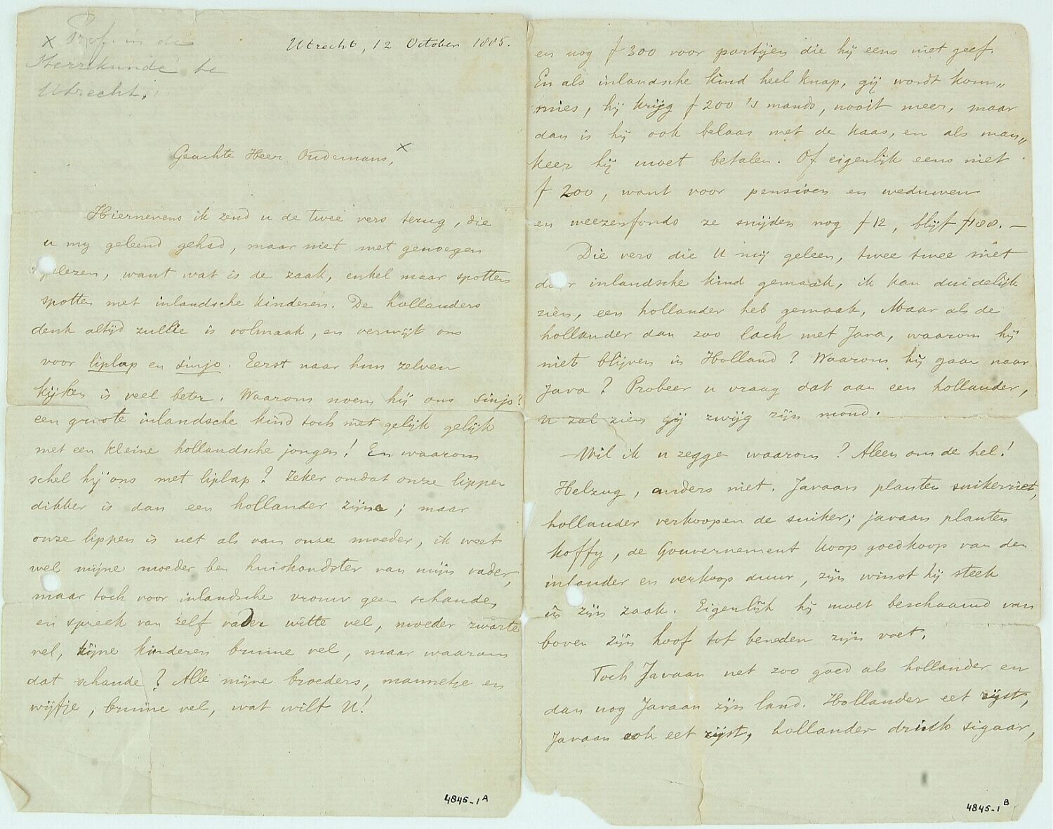 Brief van de javaan J.H. Samuels aan prof. Oudemans,...