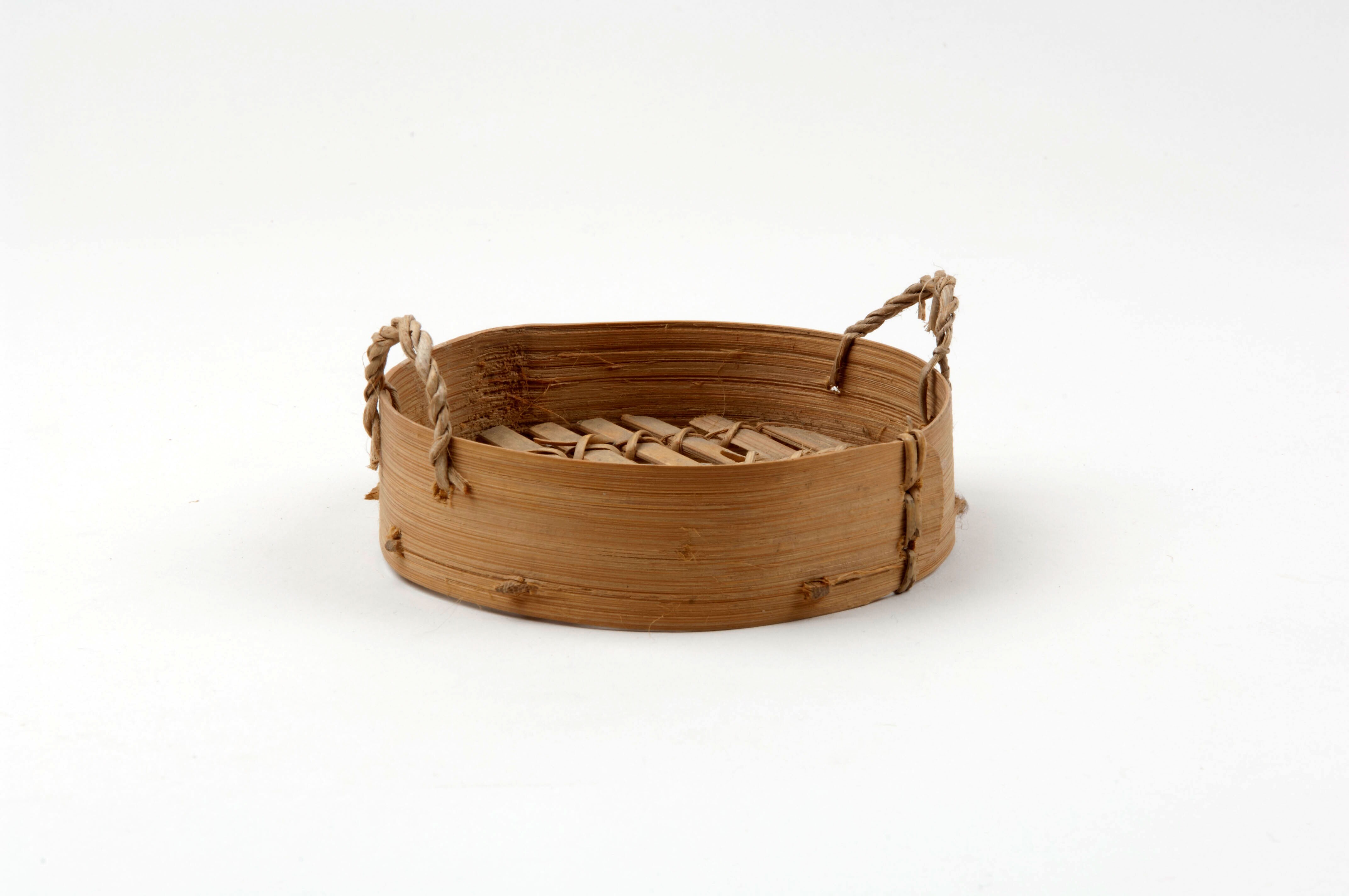 Bamboe model van een platte mand met twee handvatten