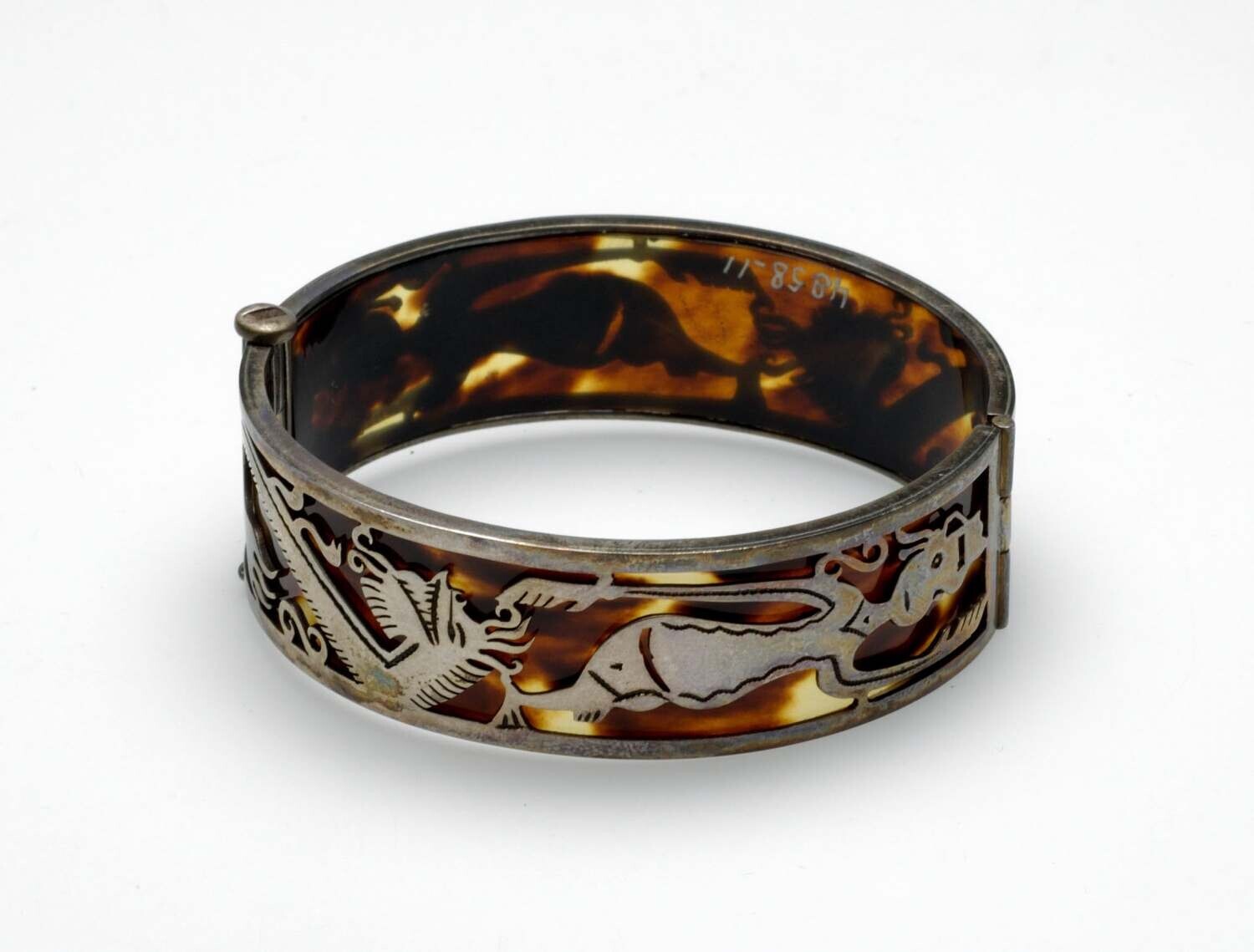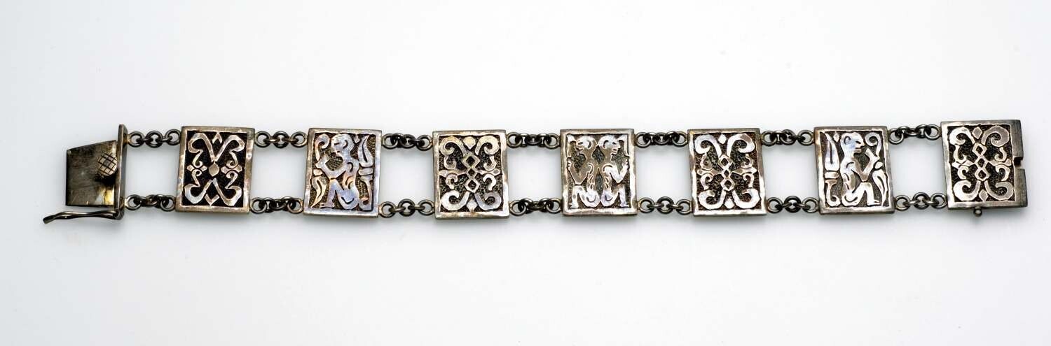 Armband van schildpad en zilver, met wayangfiguren