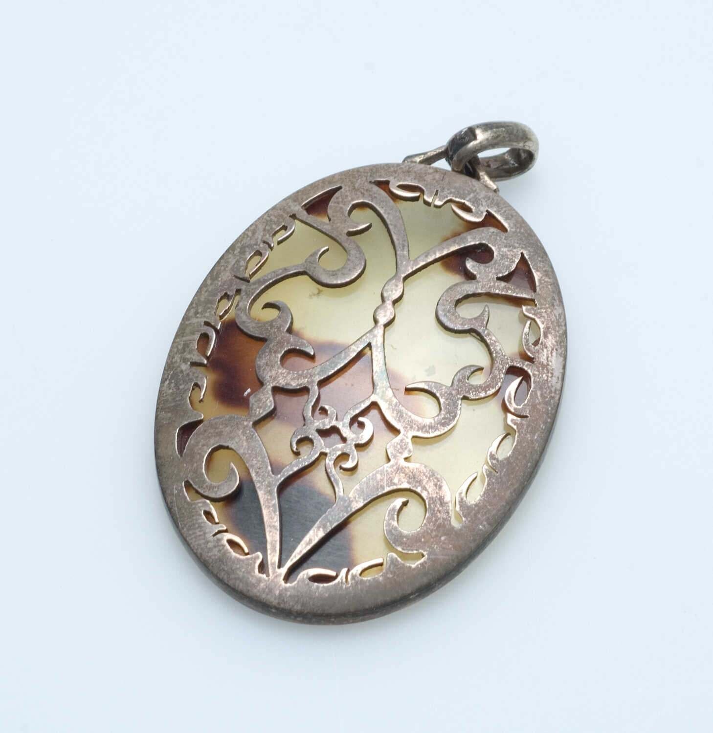 Medaillonvormige hanger, gemaakt van schildpad en zi...