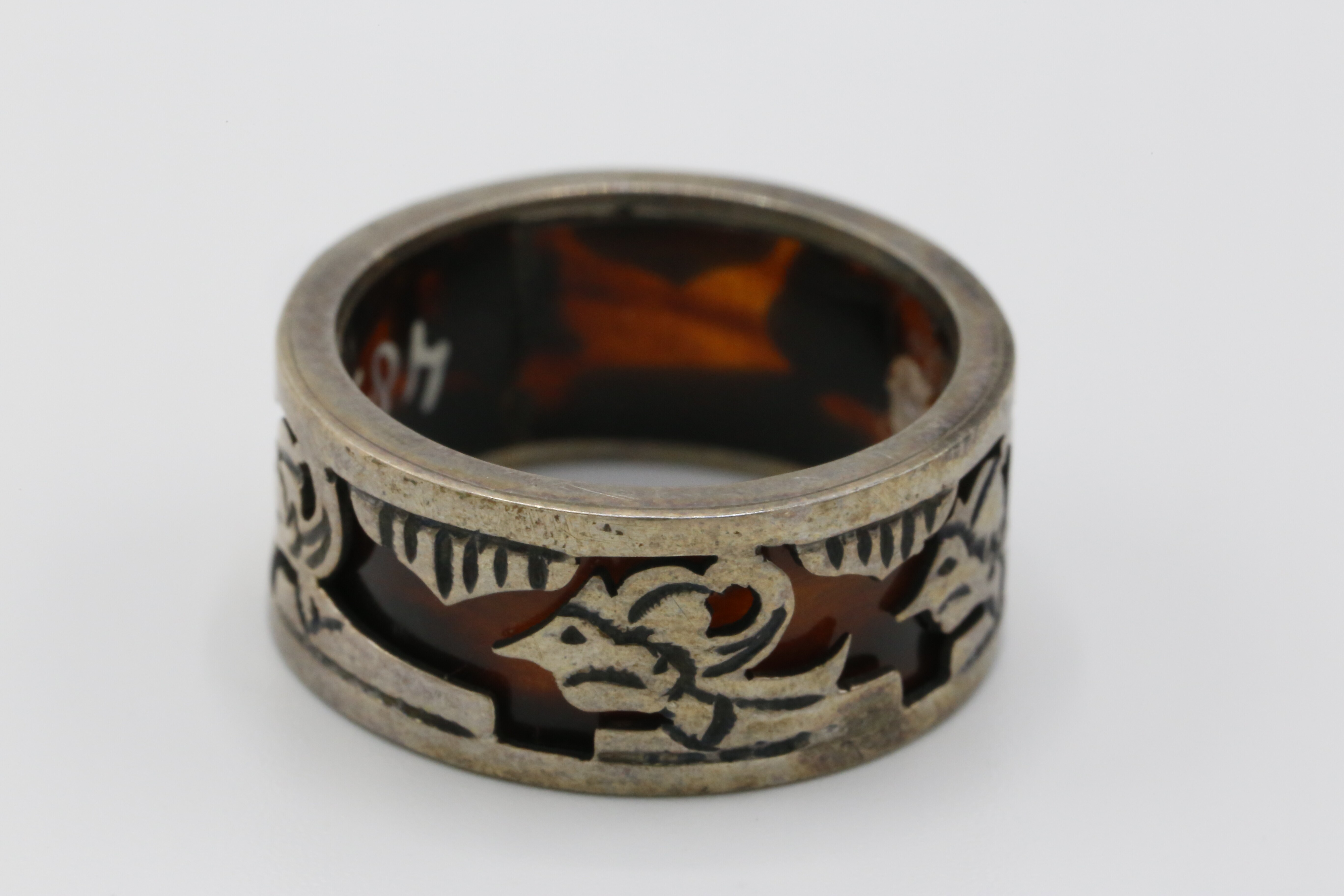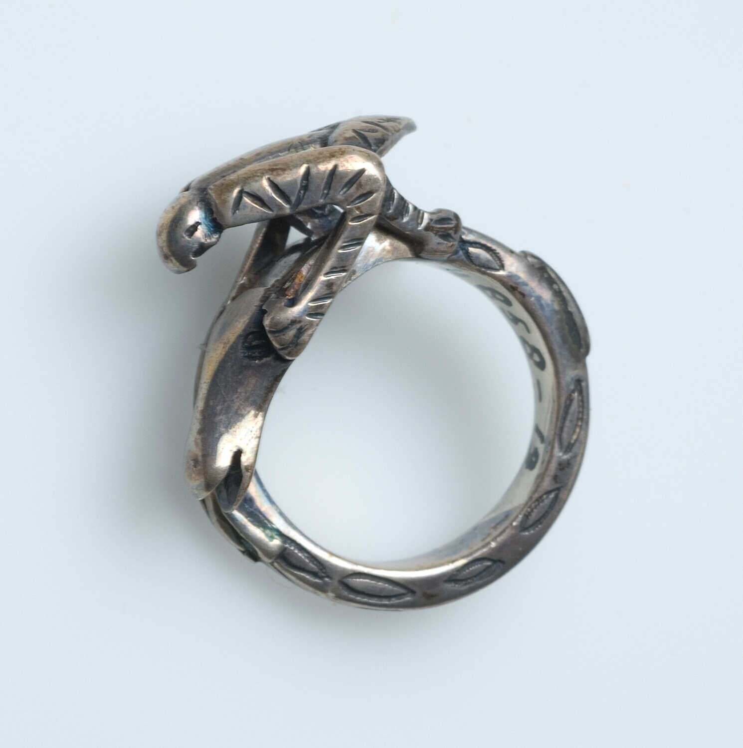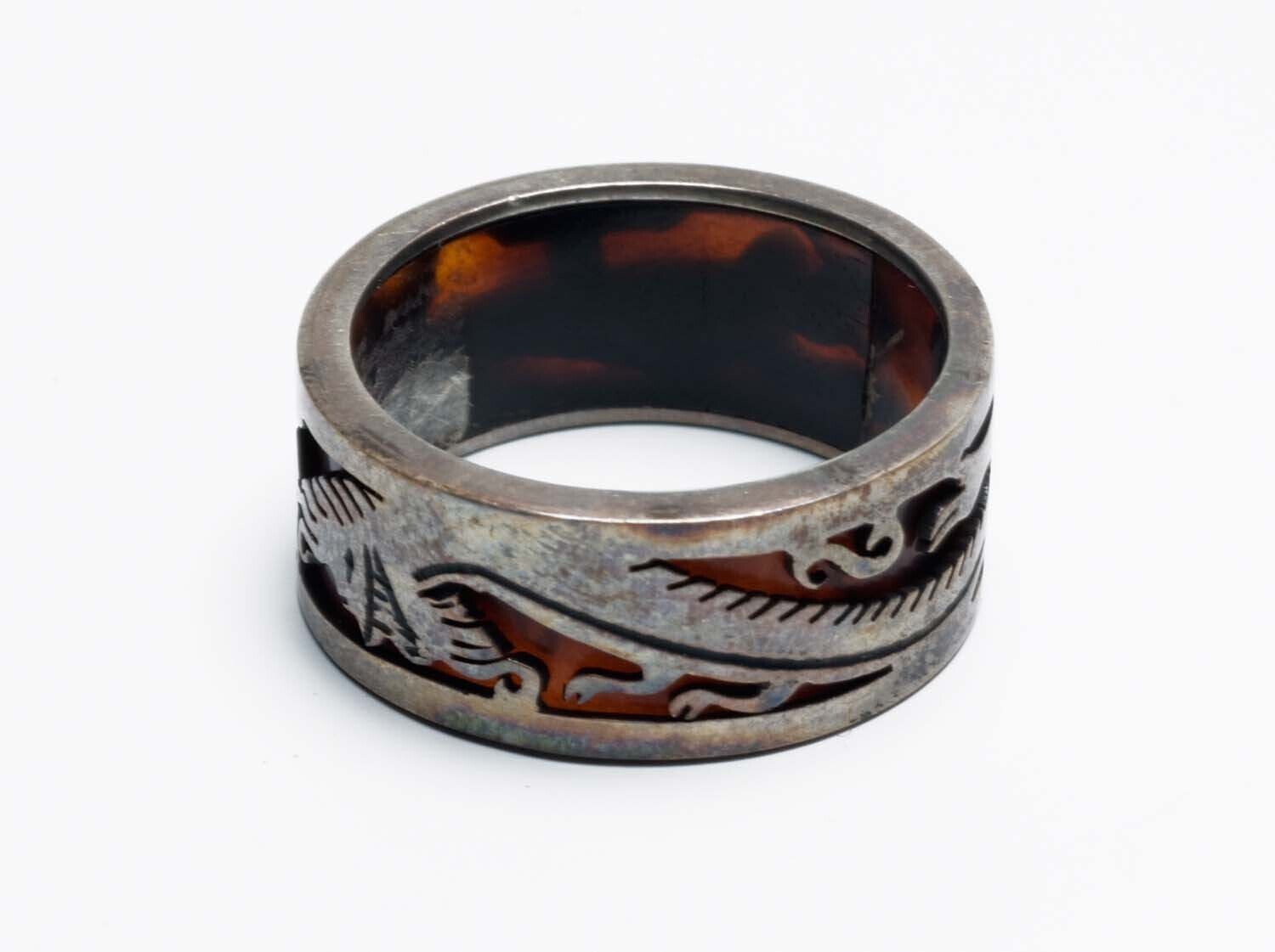 Ring met draakfiguren, gemaakt van schildpad en zilver