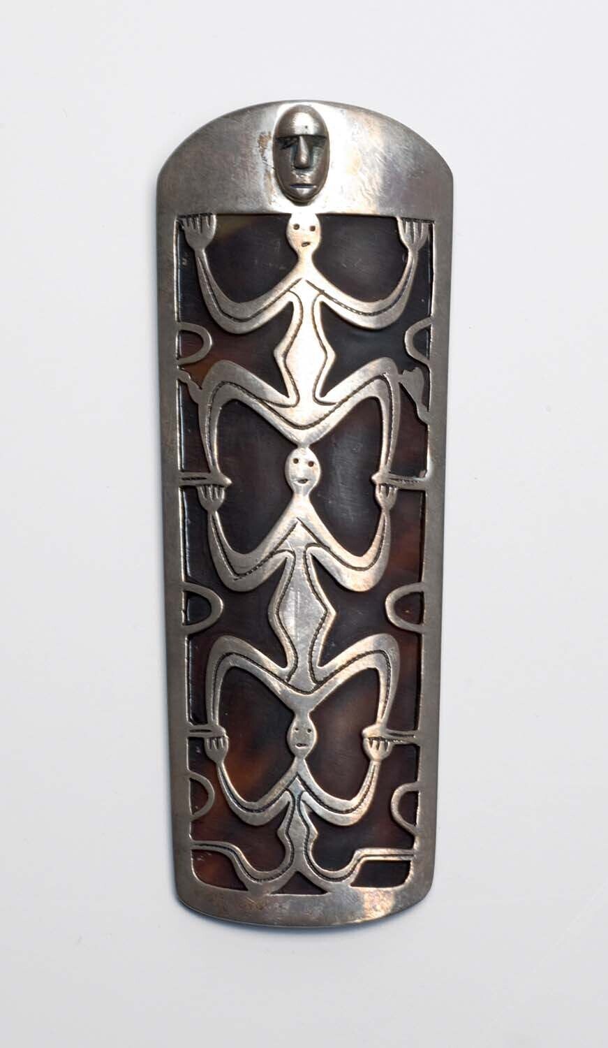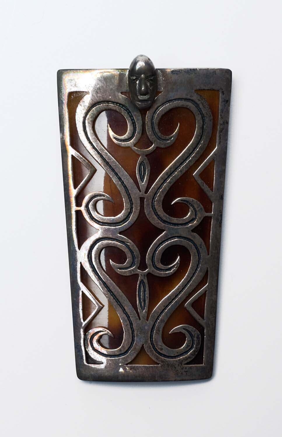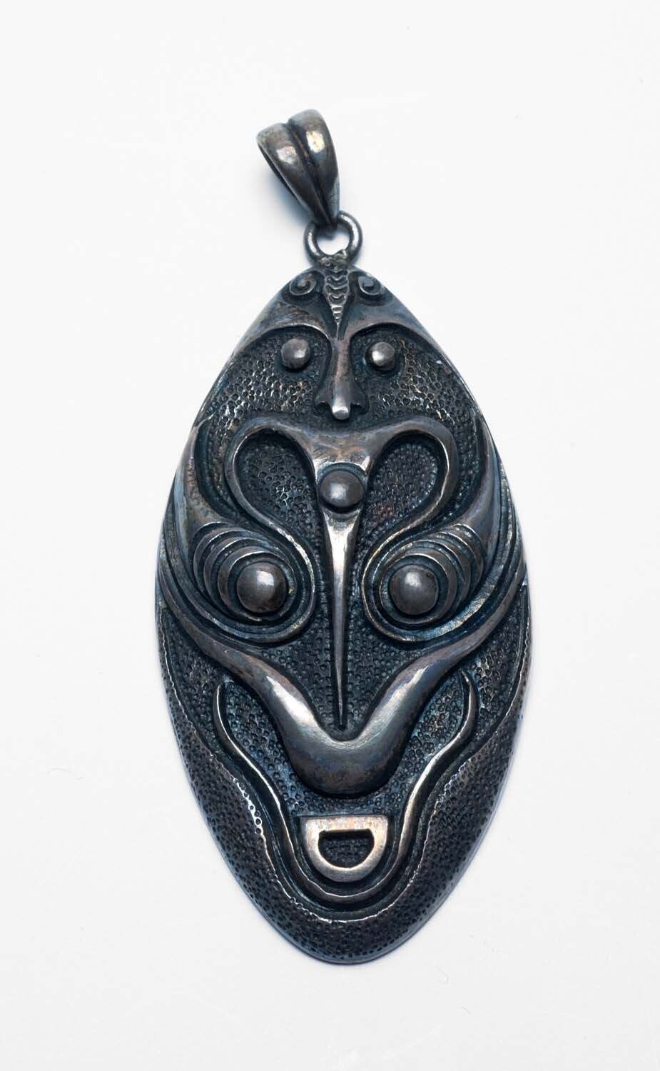 Zilveren hanger in de vorm van een Asmat schild