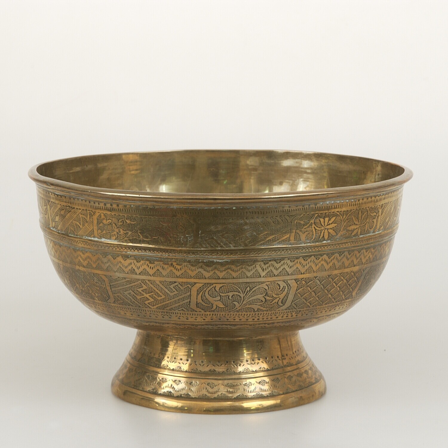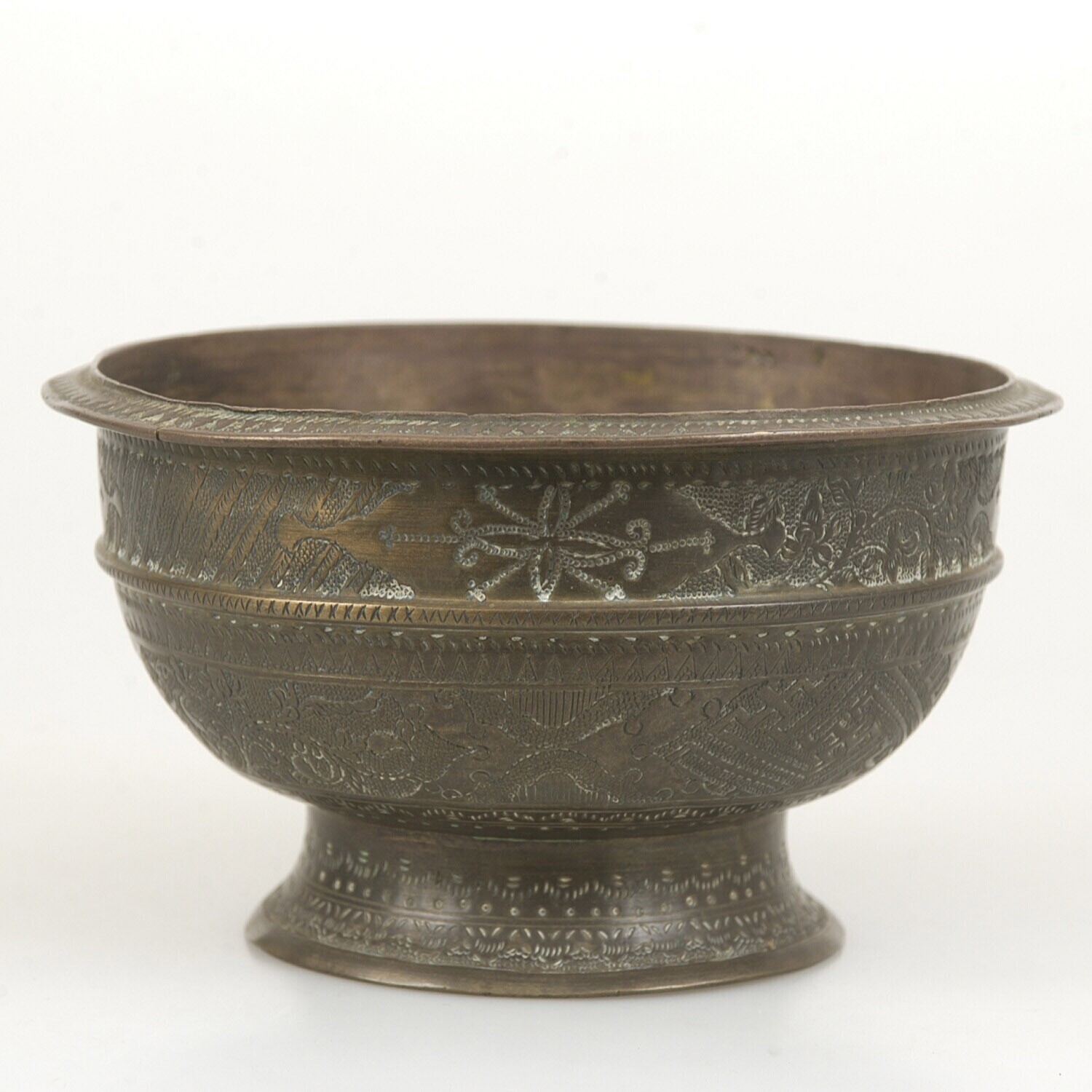 Kom van koperlegering met swastika motieven