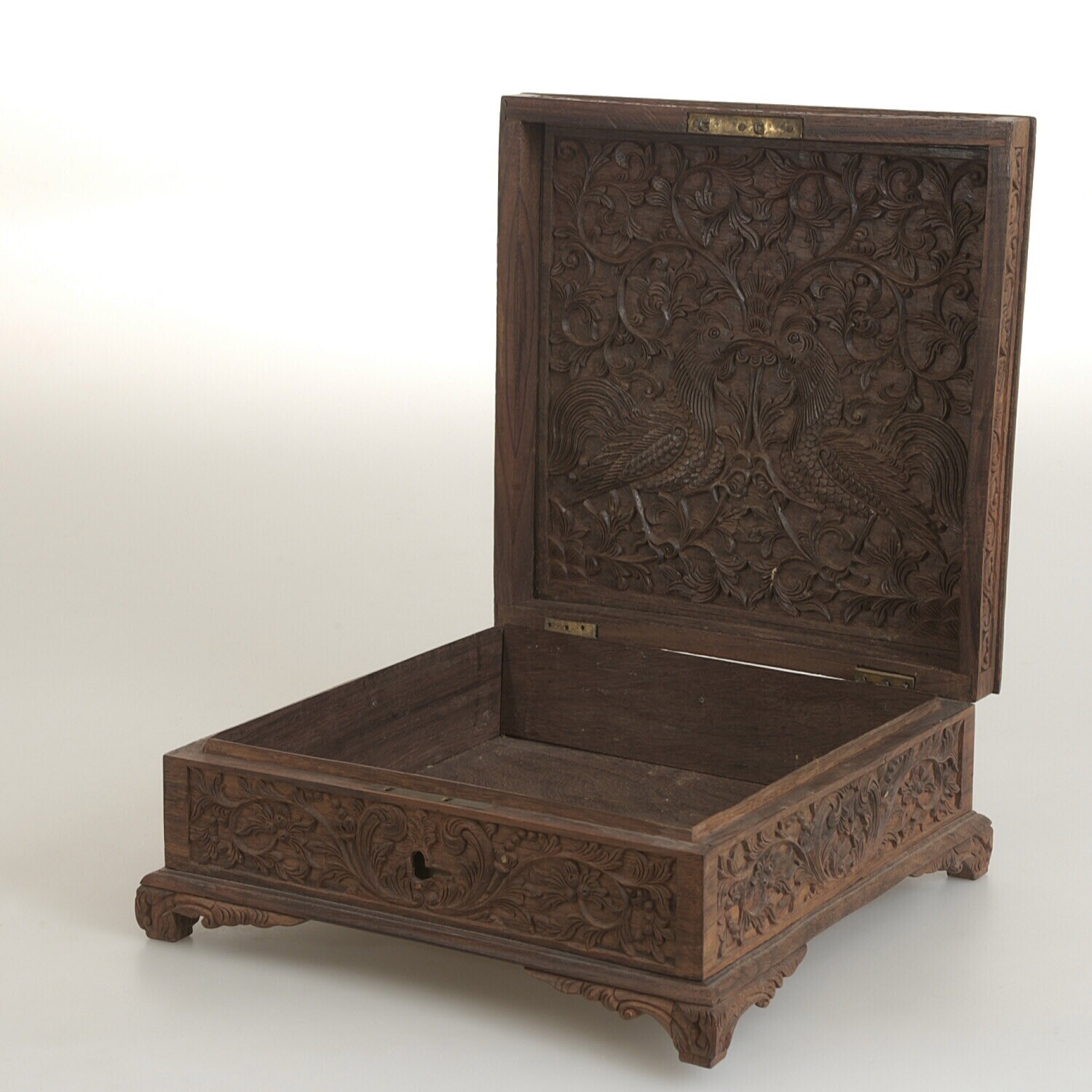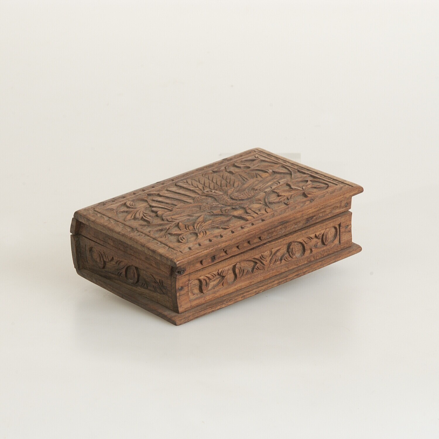 Houten dekseldoos met twee ijzeren scharnieren