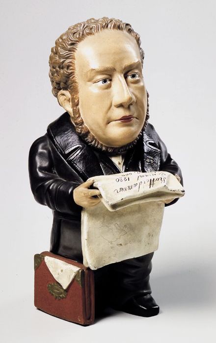 Meerkleurig wandbord met voorstelling standbeeld van...
