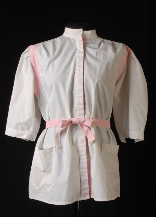 Kapsterjas, wit met roze accenten en los ceintuur