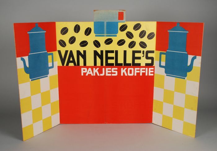 Uitklapbaar reclamebord Van Nelle's "PAKJES KOFFIE"