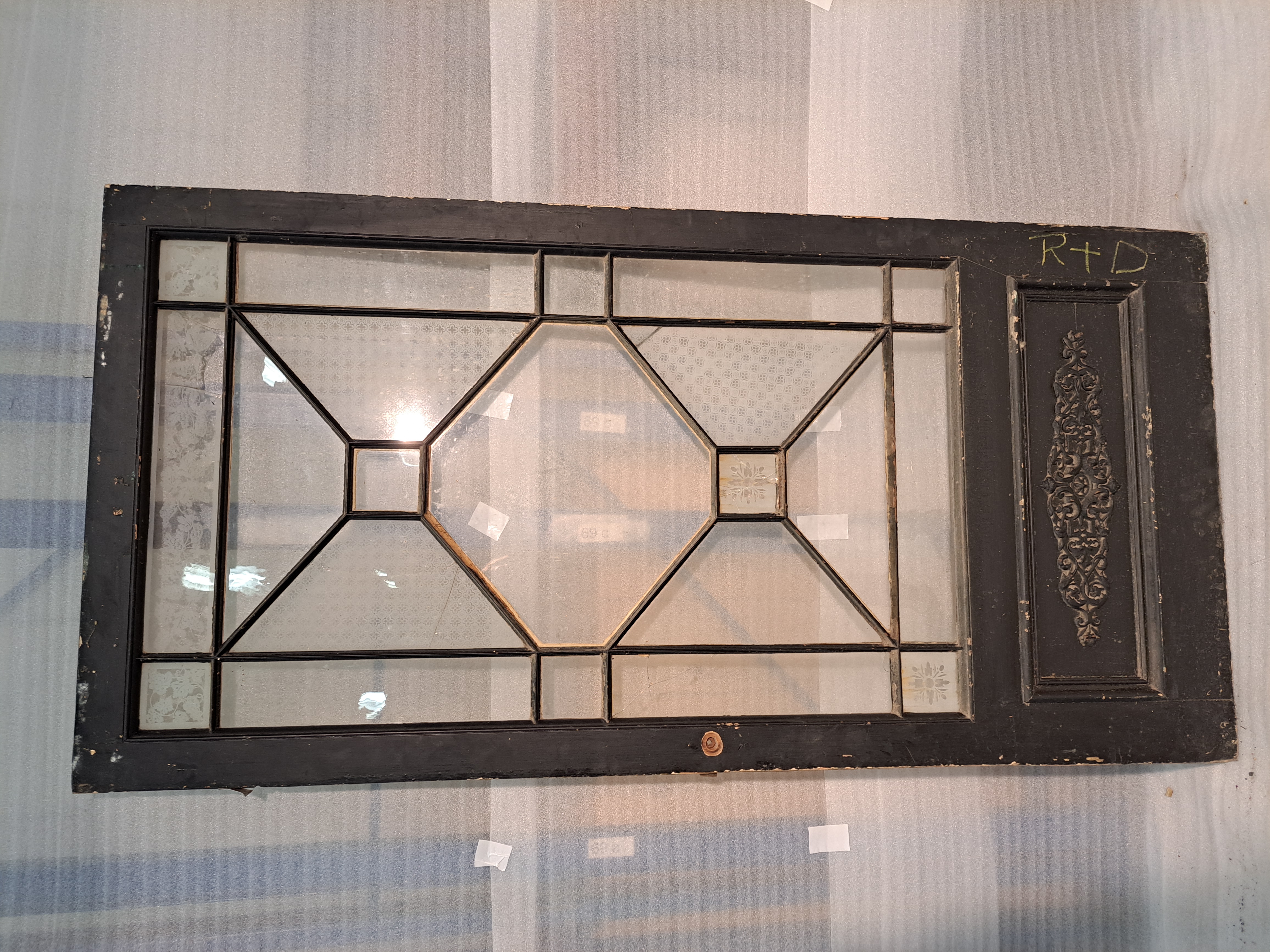 Ensemble huisraad met houtsnijwerk versiering, met n...