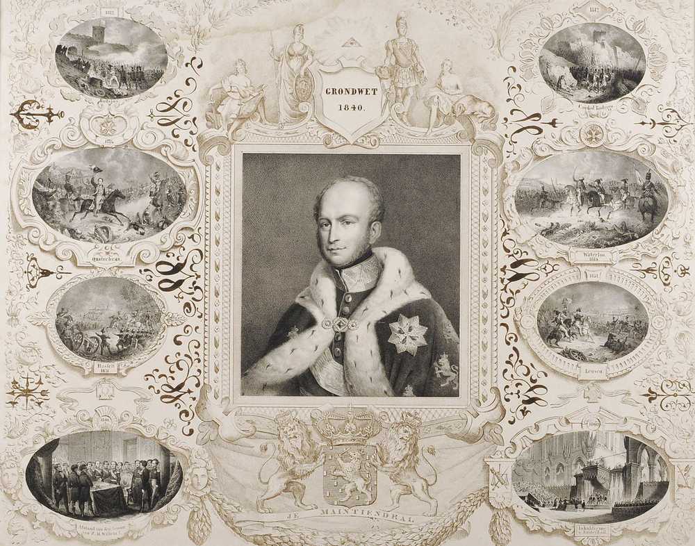 Grondwet 1840 en Portret van W II + 8 taferelen