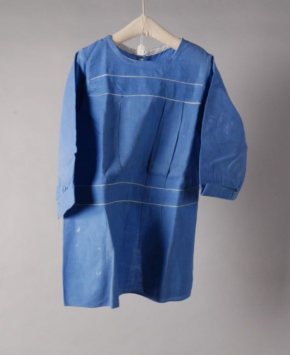 Blauw mouwschort met biezen en lange mouwen