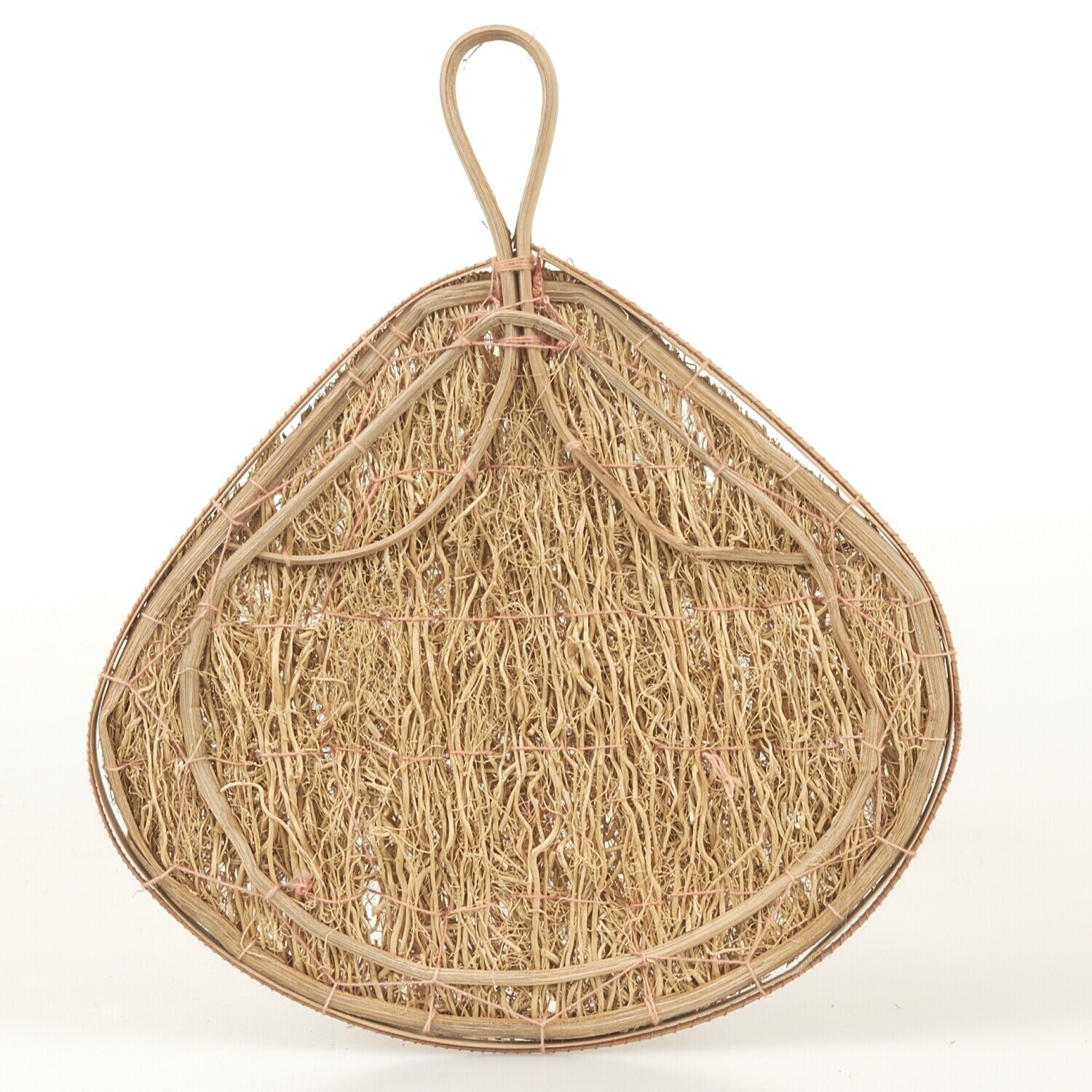 Gevlochten vuurwaaier van bastrepen, gebruikt als ki...