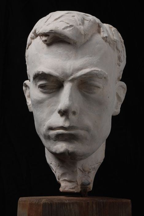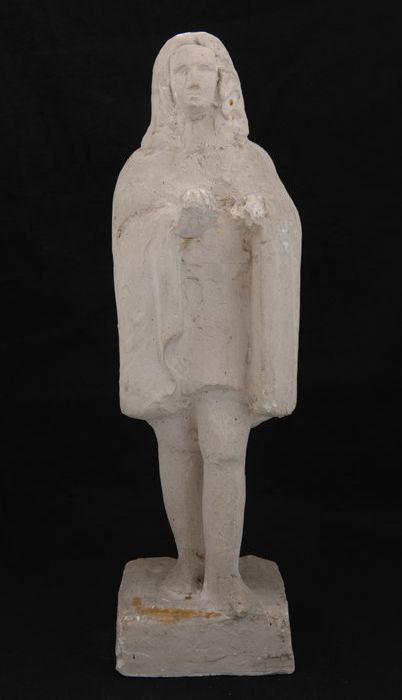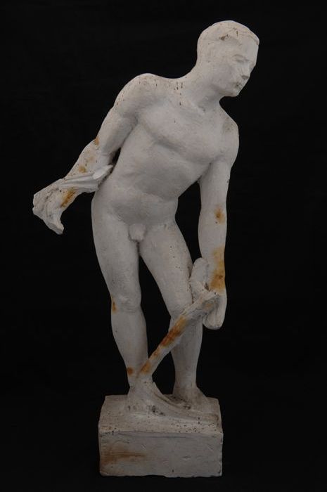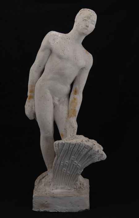 Ontwerp in gips voor natuurstenen beeld, staande man