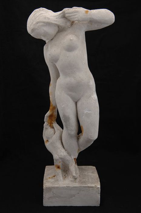 Ontwerp in gips voor natuurstenen beeld, vrouw staan...