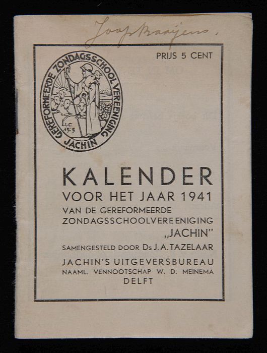 Kalender 1941 van de gereformeerde zondagsschool, bo...