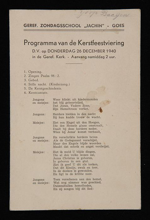 Programma kerstfeestviering 1940 van de gereformeerd...