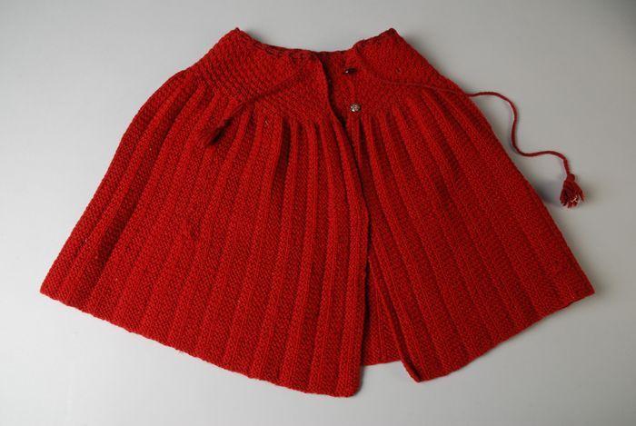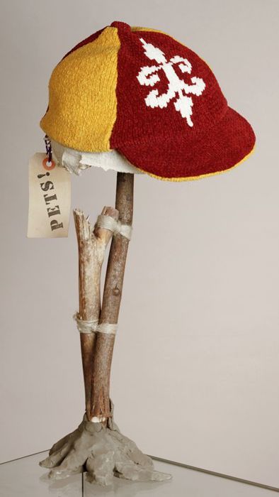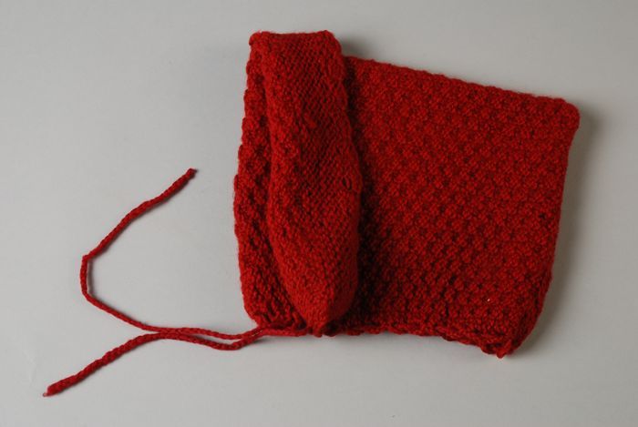 Donkerrood en gele chenille gebreide kinderpet van "...