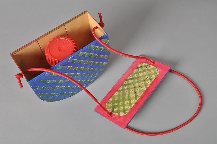 Lunchkoffertje, halfronde schoudertas van beschilder...