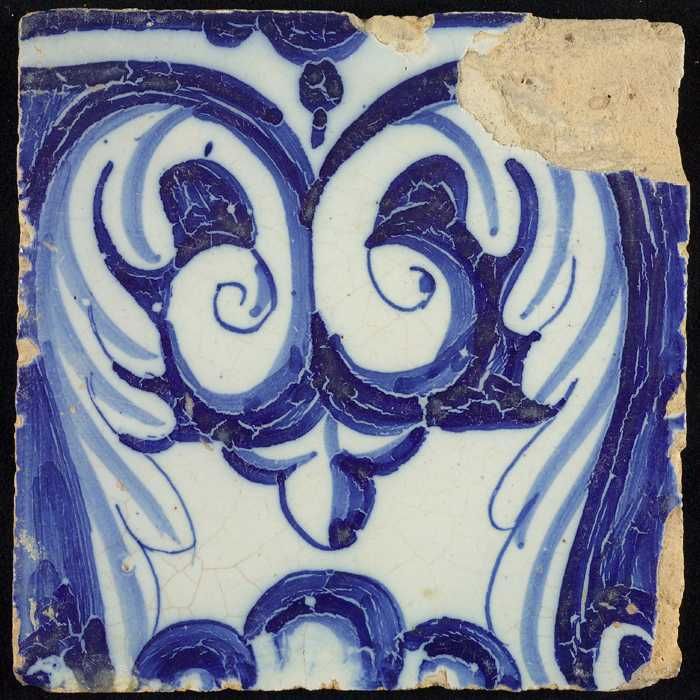 Tegel van schoorsteenpilaster, blauw op wit, deel va...