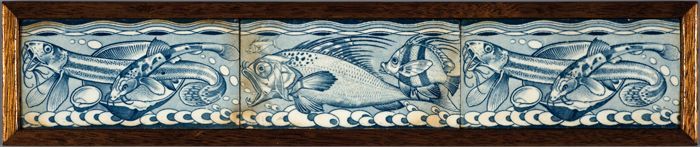 Tegeltableau in houten lijst, drie langwerpige randt...