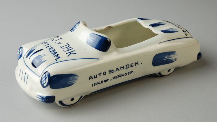 Asbak in vorm van auto, met reclame voor autobandenh...