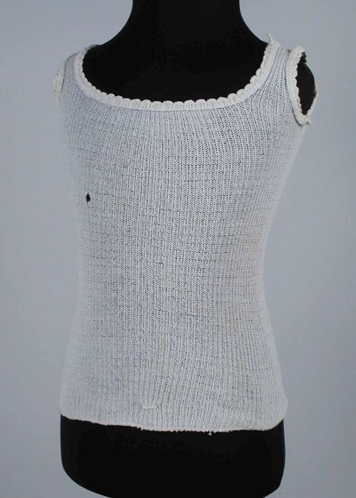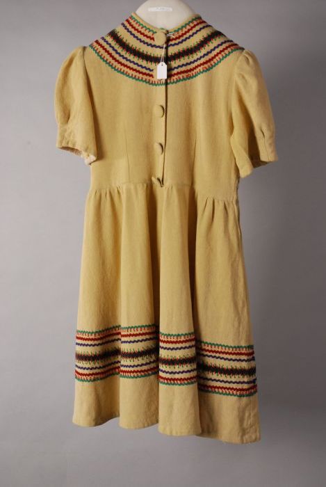 Kinderjurk van gele wol, ronde hals en pofmouwen, me...