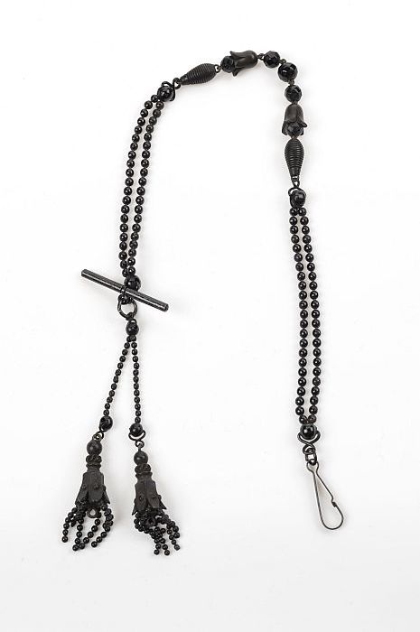 Zwart glanzende horlogeketting, deels van metalen ke...