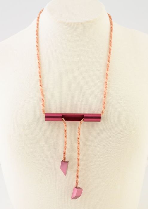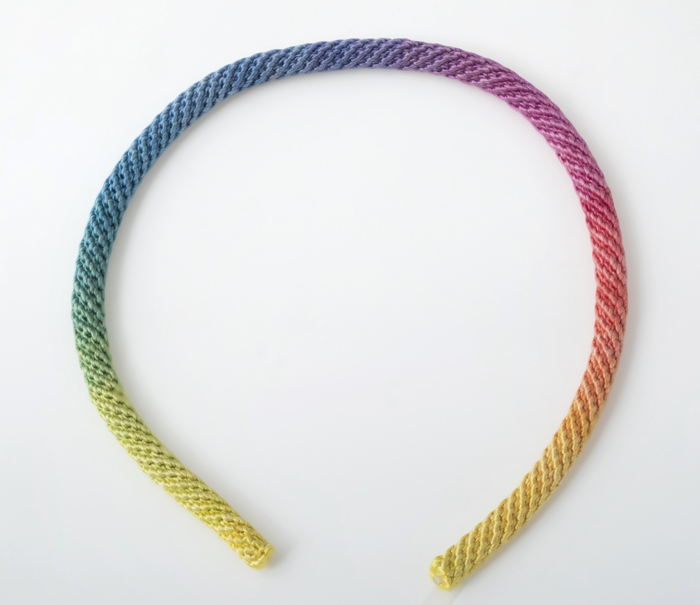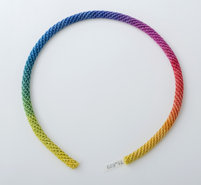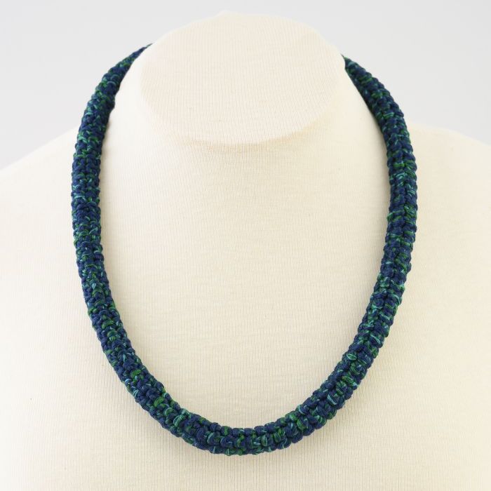 Ketting van blauw-groen gevlochten koord, gevat in z...