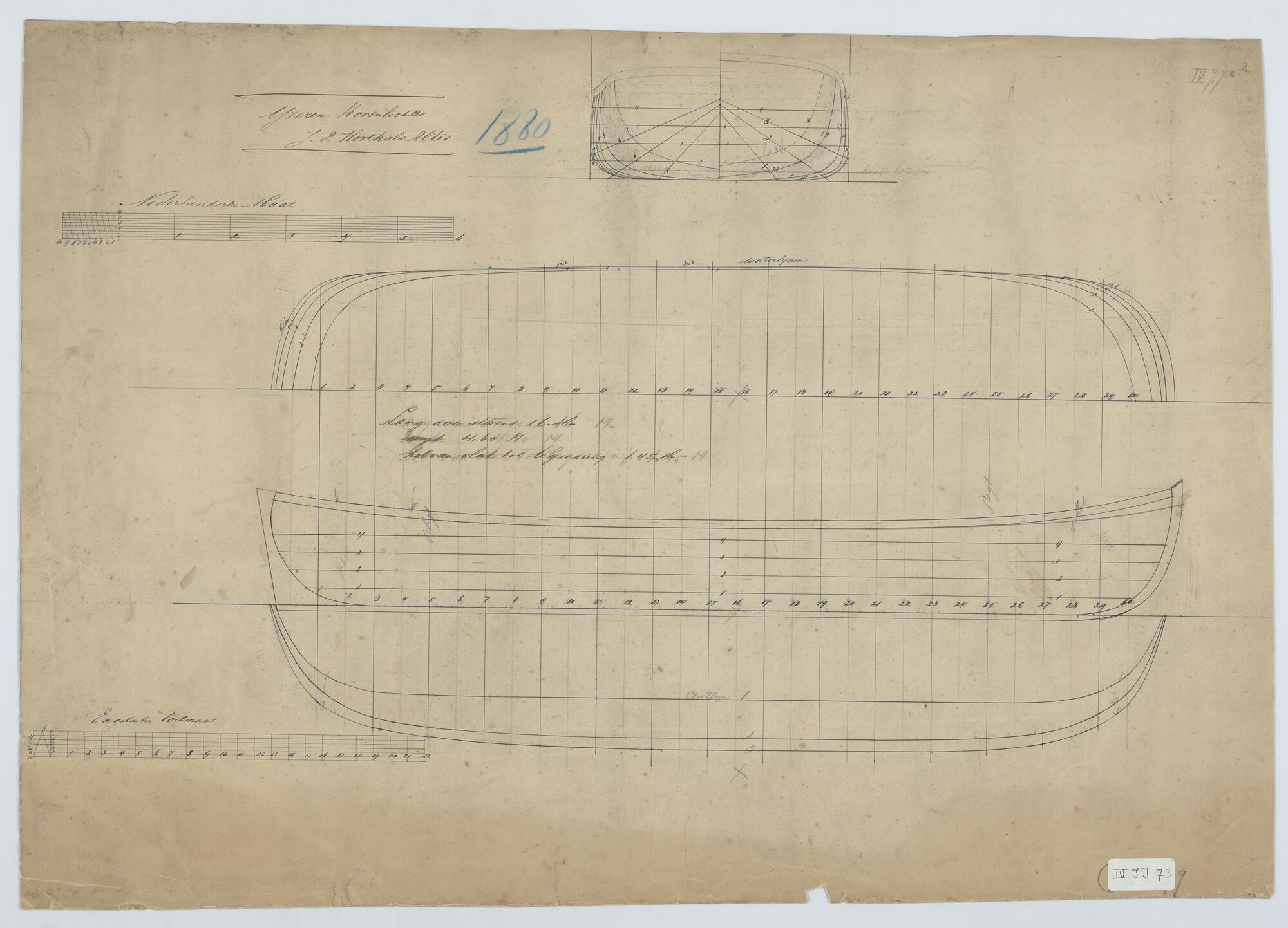 Lijnenplan van ijzeren vaartuig nummer 2, Tolkers en...