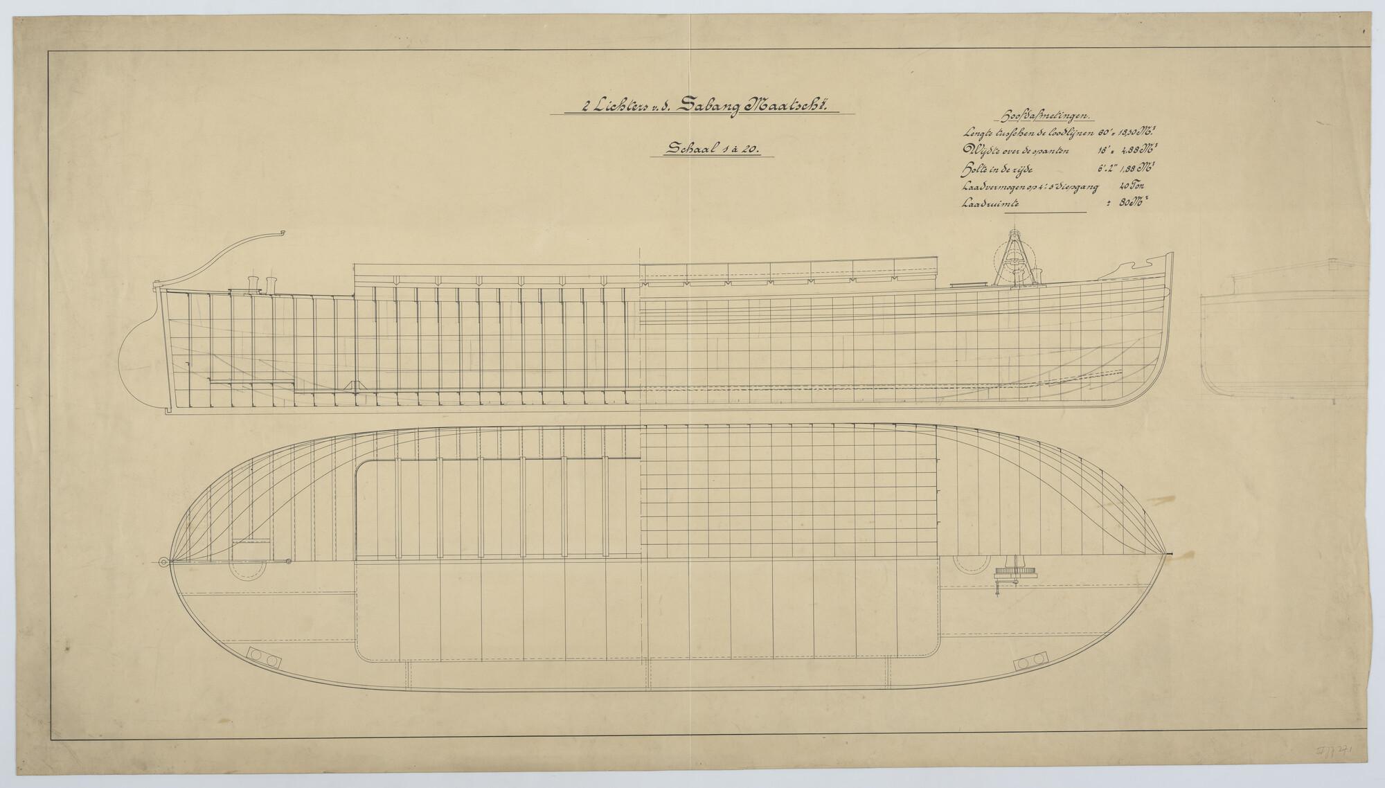 Lijnenplan van twee lichters voor de Sabang Maatscha...