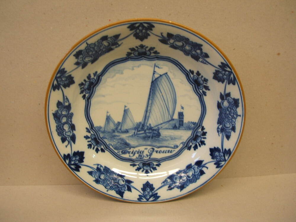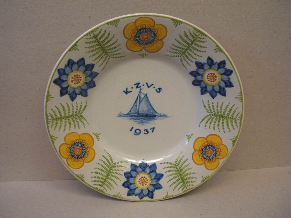 Herdenkingsbord met landschappelijk decor van zeilsc...