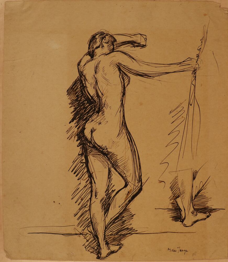 Staand vrouwelijk naakt en voet- en beenstudie