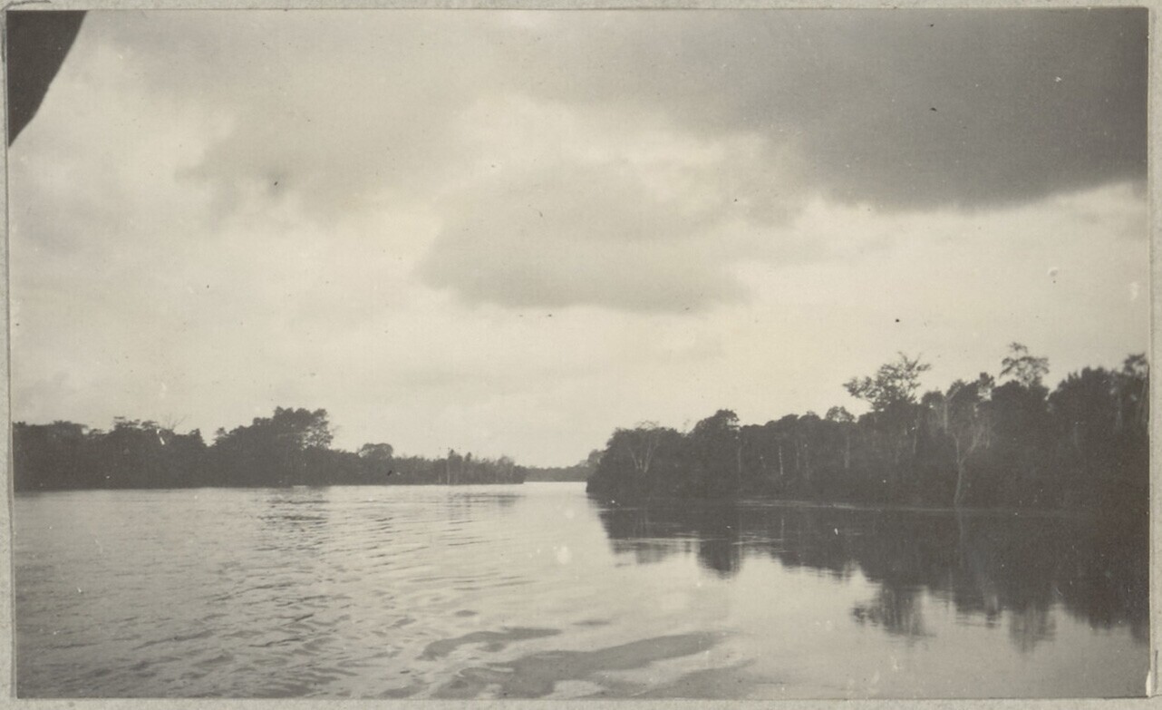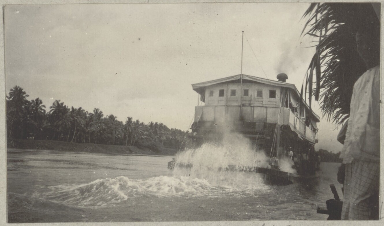 De raderboot 'Ogan' van de KPM op de rivier bij Moea...