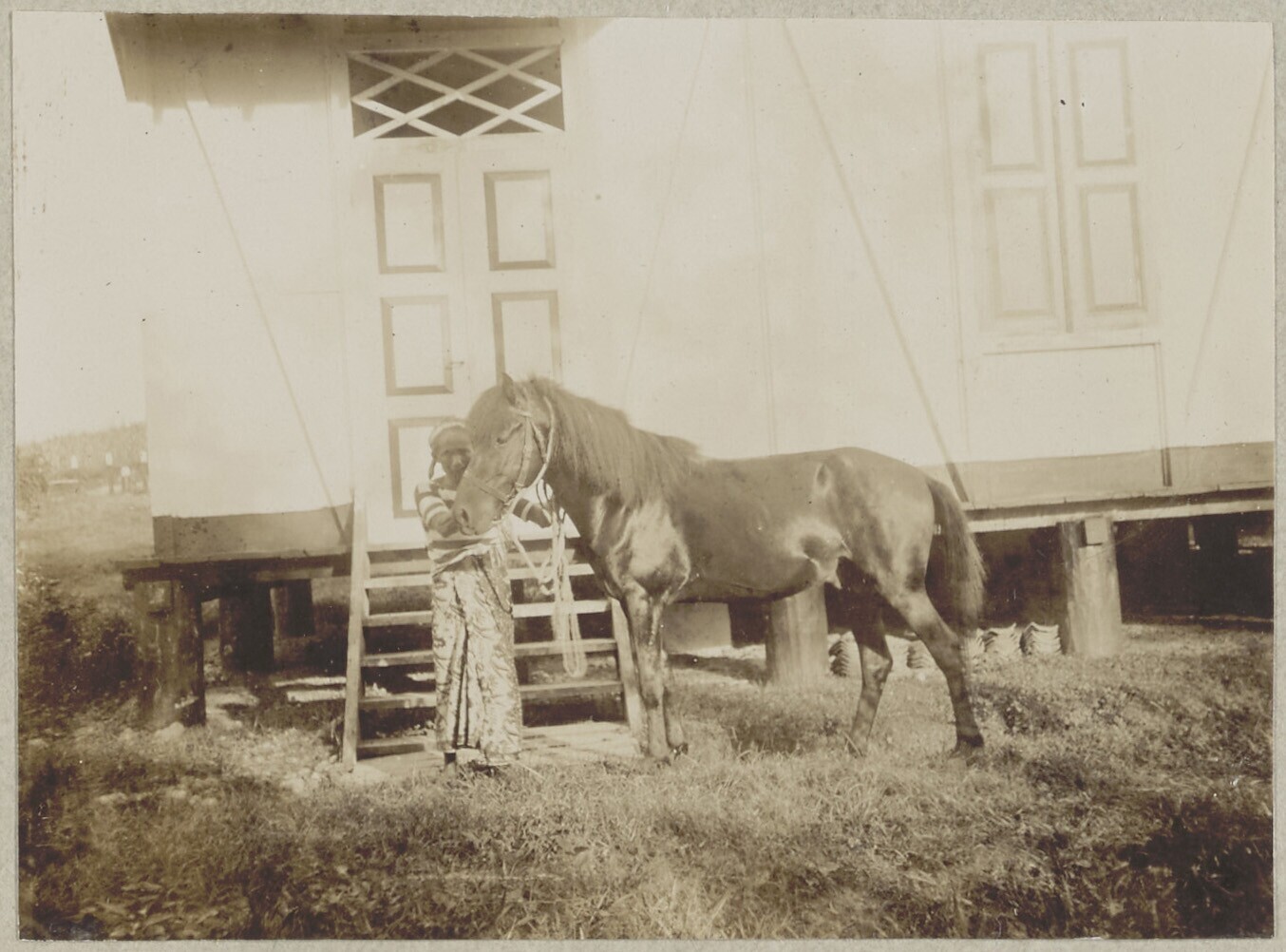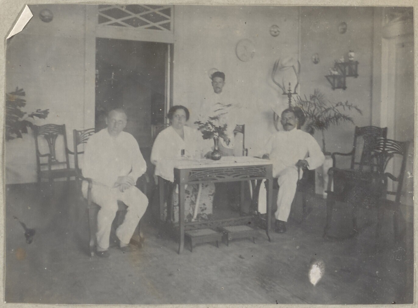 Huispersoneel van C.H. Japing met hond Kobus, Panoen...