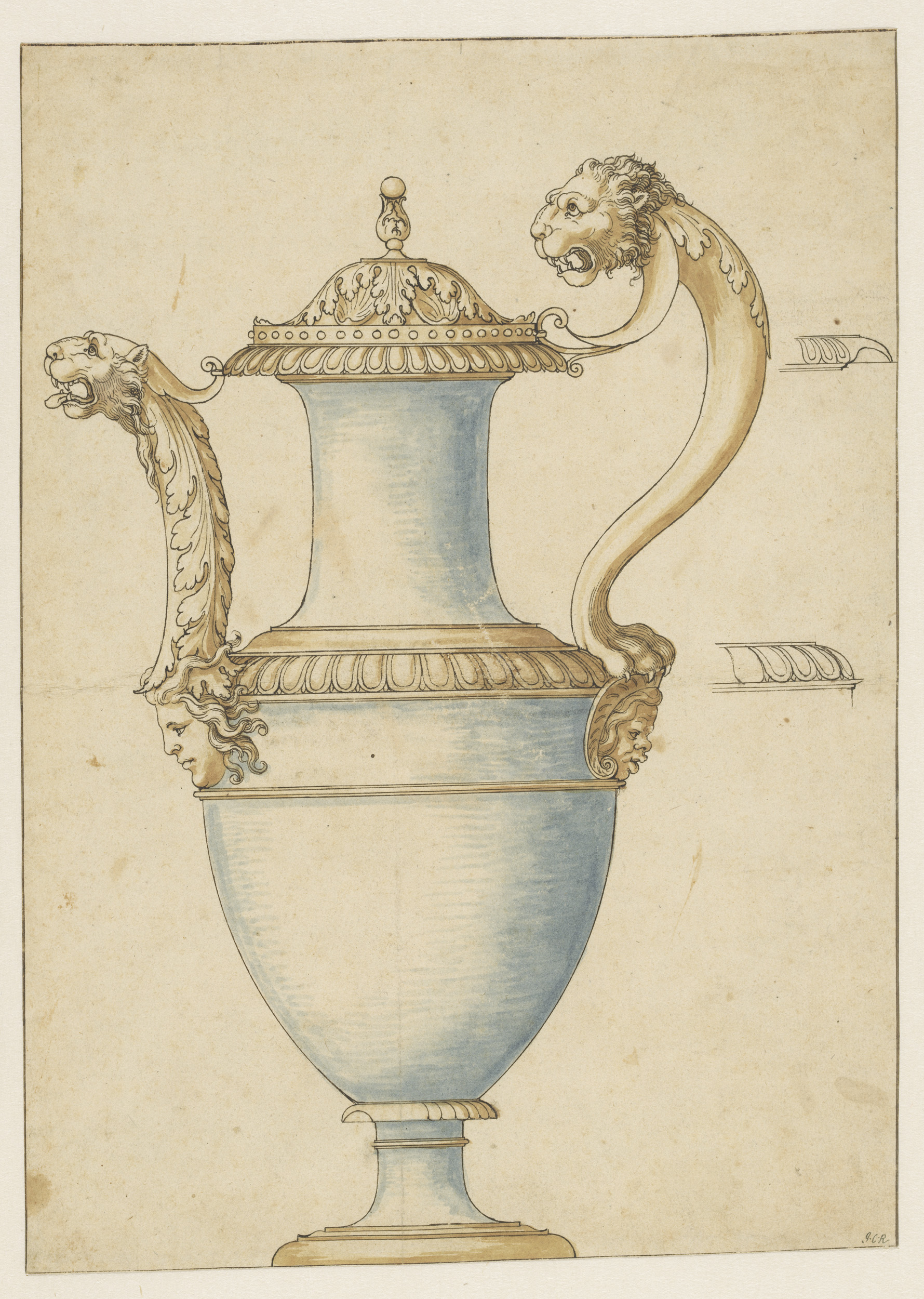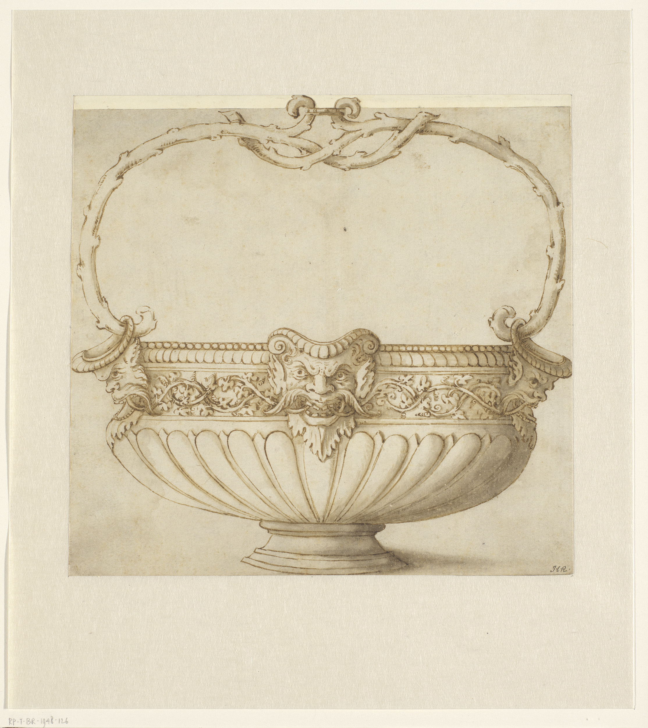 Ontwerp voor een bekken met drie saterkoppen en een ...