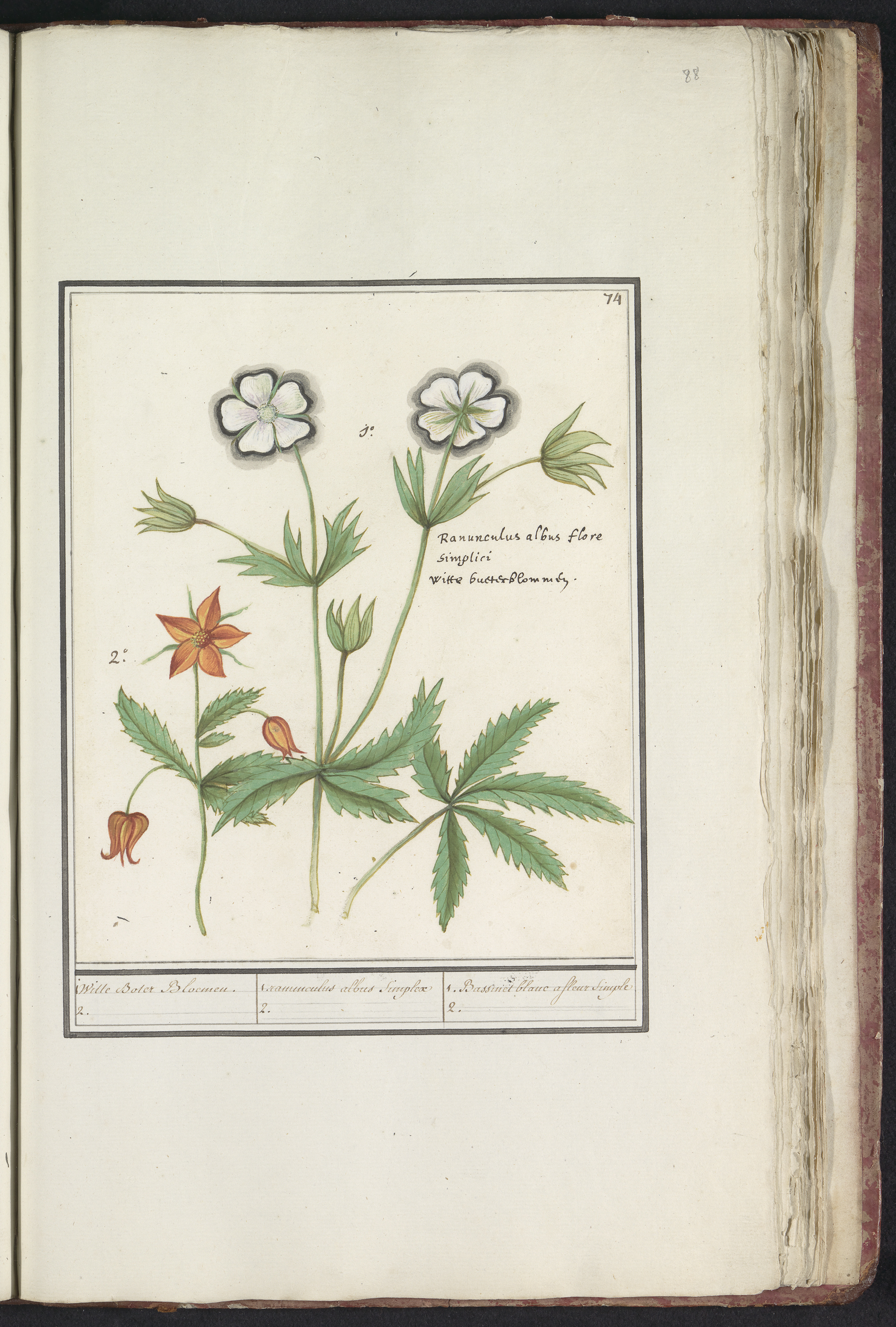 Witte boterbloem (Ranunculus) en een onbekende bloem