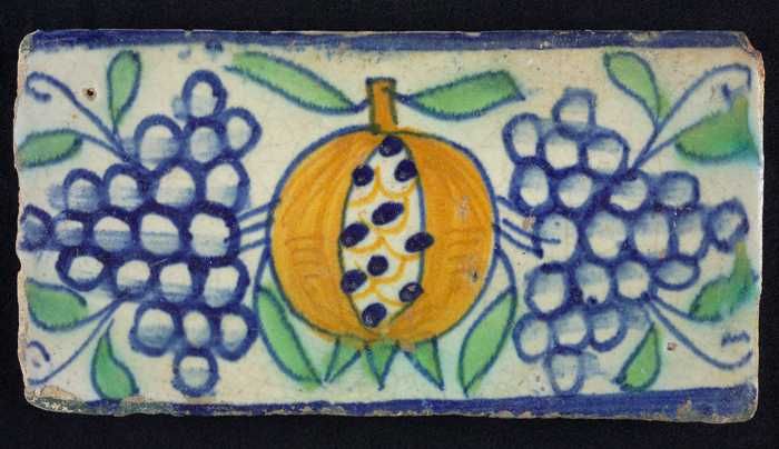 Randtegel, met granaatappel, druiventrossen en blaadjes