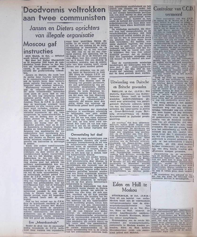 Een aantal krantenknipsels uit de oorlogsperiode 194...