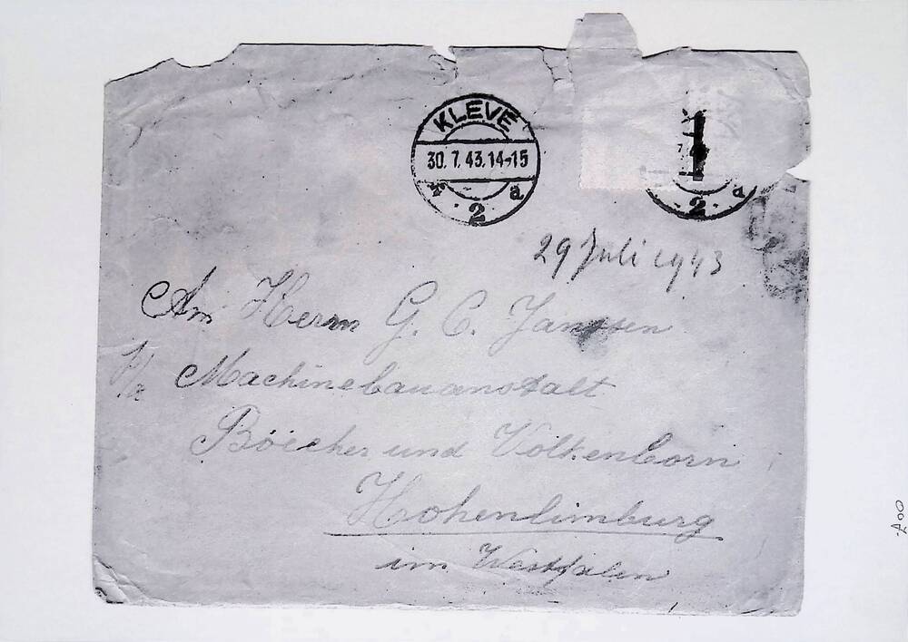 Brief in enveloppe. 29 juli 1943. Aan den heer G.C. ...