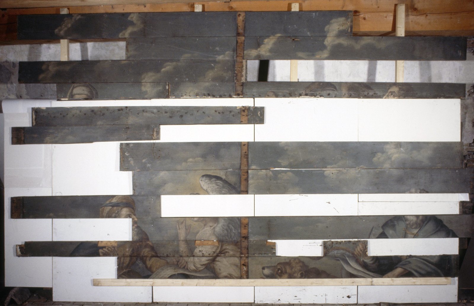 Interieur, houten wandschildering