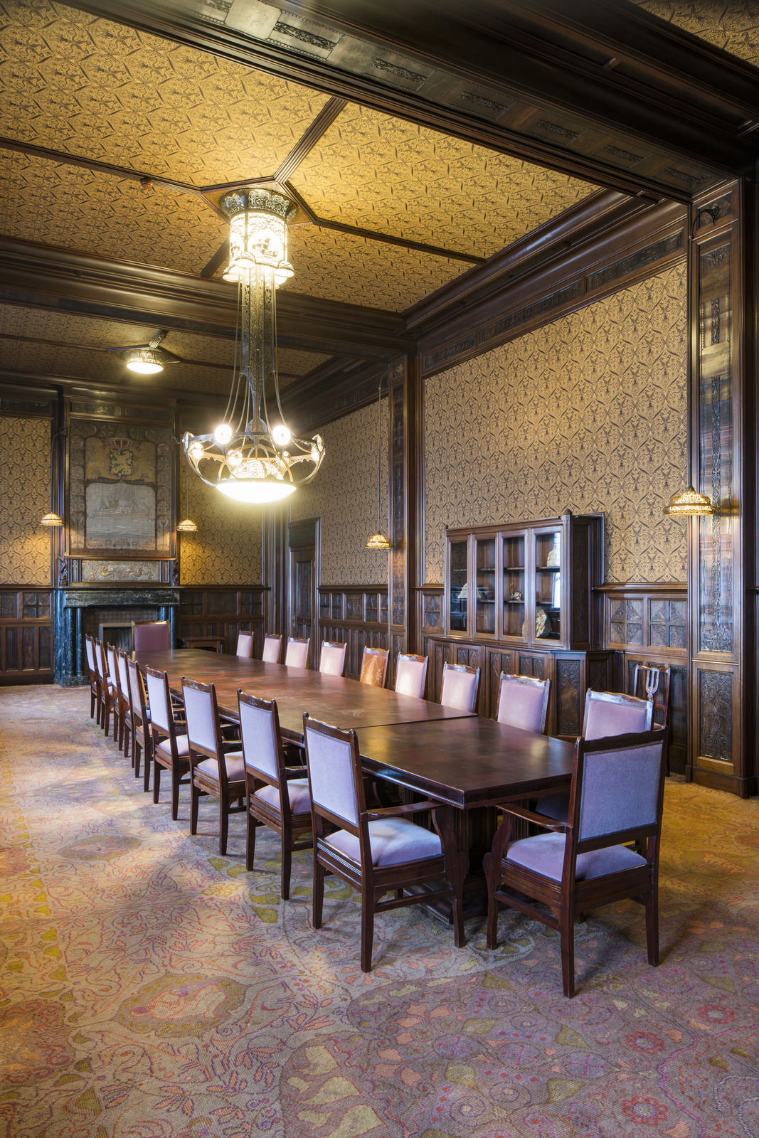 Beraadzaal in zuid richting met schouwpartij op acht...