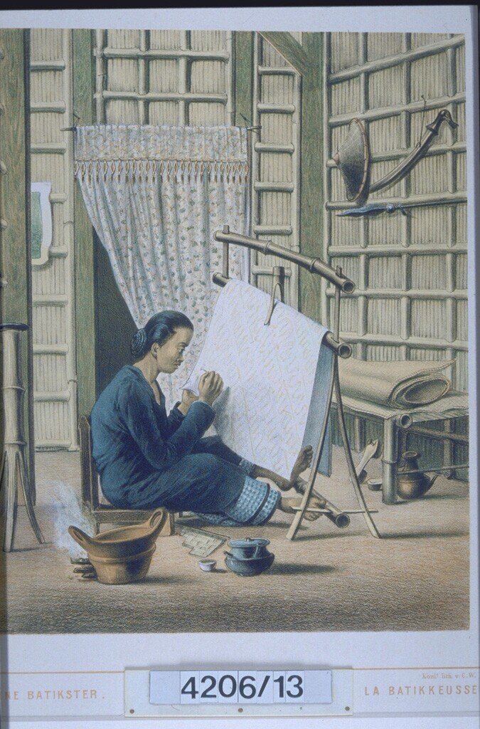 Gevlochten deksel of bak, van vermoedelijk lontarblad
