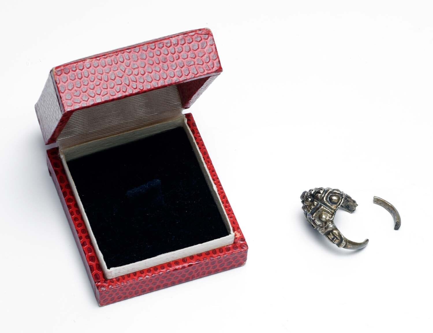 Zilveren sirihdoos met toiletgerei met slangenversie...
